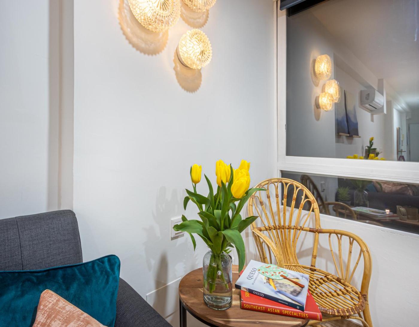 One-Bedroom Apartment. This spacious apartment includes 1 living room, 1 separate bedroom and 1 bathroom with a shower and a hairdryer. Guests can make meals in the kitchen that is fitted with a refrigerator, a dishwasher, kitchenware and a microwave. The air-conditioned apartment offers a flat-screen TV, a washing machine, a tea and coffee maker, a seating area as well as sea views. The unit has 2 beds.
