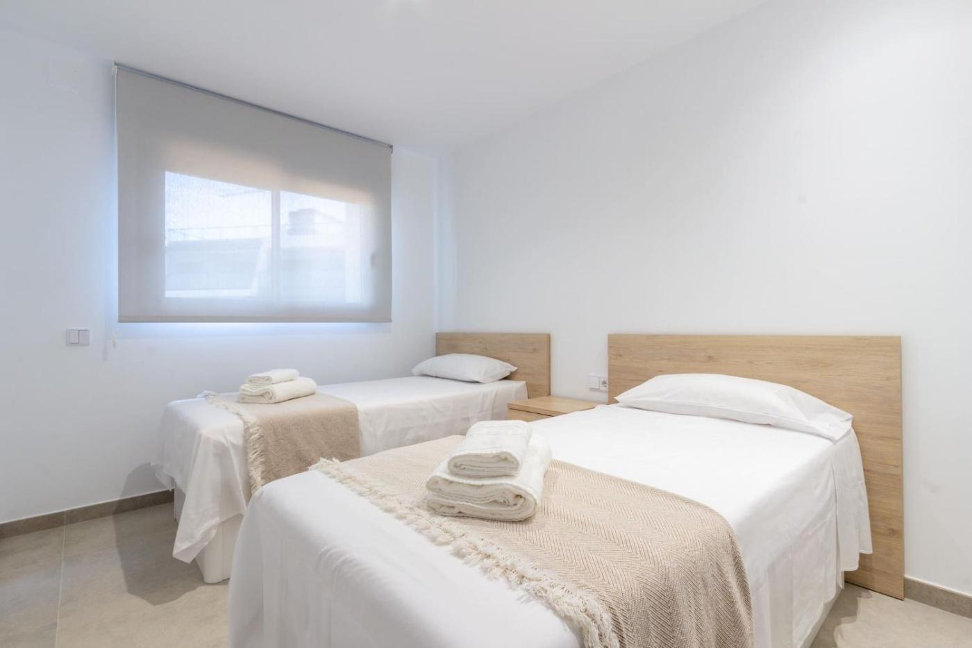Three-Bedroom Apartment. Boasting 3 bedrooms and 2 bathrooms with a shower, this spacious apartment has a well-fitted kitchen and a terrace. The well-equipped kitchen has a stovetop, a refrigerator, a dishwasher and kitchenware. Featuring an outdoor dining area, this apartment also offers air conditioning, a washing machine and a TV. The unit offers 5 beds.