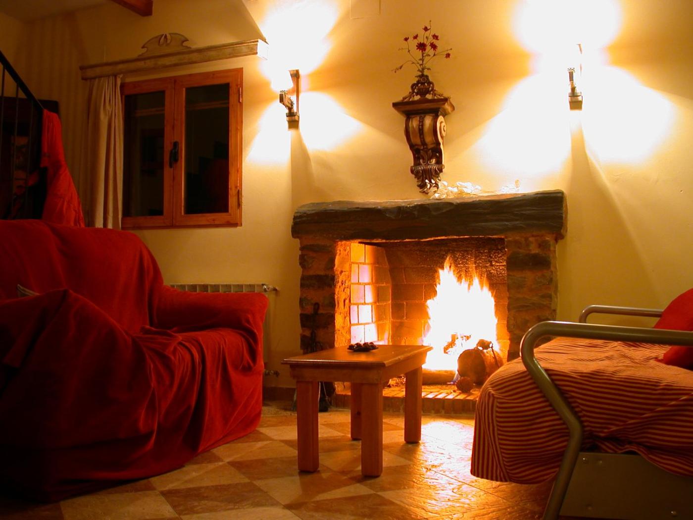 Two-Bedroom House. This holiday home features a fireplace. Featuring a private entrance, this air-conditioned holiday home comprises 1 living room, 2 separate bedrooms and 1 bathroom with a shower and a bidet. Guests will find a stovetop, a refrigerator, kitchenware and a microwave in the kitchen. The holiday home also provides guests with a barbecue. The spacious holiday home provides a washing machine, a coffee machine, a seating area as well as a terrace with garden views. The unit offers 5 beds.