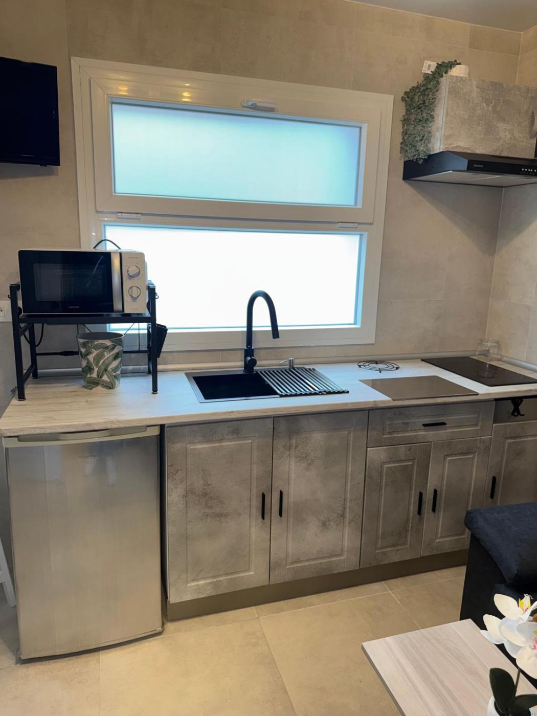 One-Bedroom Apartment. This apartment includes 1 bedroom, kitchen, a terrace and 1 bathroom with a shower. The apartments kitchen is available for cooking and storing food. The apartment offers air conditioning, a wardrobe, a sofa, a flat-screen TV, as well as garden views. The unit has 3 beds.