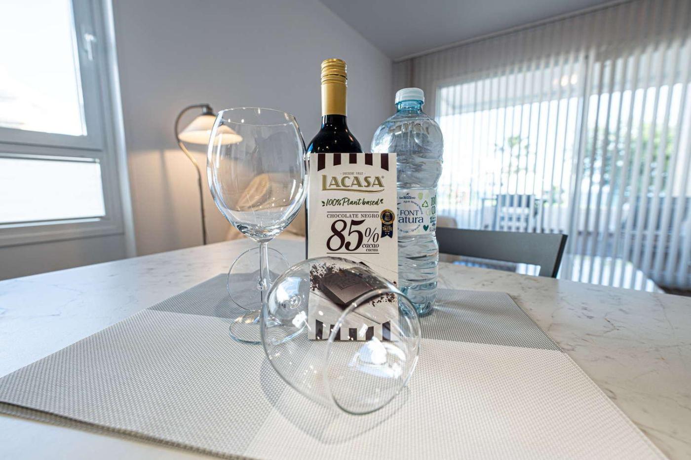 The apartment is fitted with 1 bedroom, 1 bathroom, bed linen, towels, a flat-screen TV with satellite channels, a dining area, a fully equipped kitchen, and a terrace with sea views. Guests can enjoy a meal on an outdoor dining area while overlooking the pool views. Additional in-room amenities include wine or champagne.